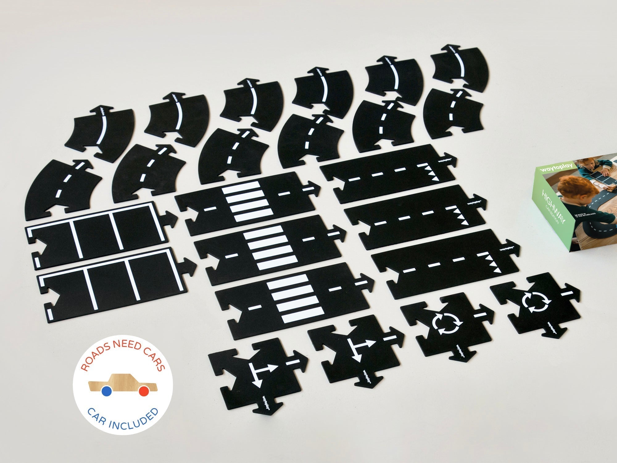 Ak váš chlapec miluje autá, autodráhy a skladanie, je pre neho gumová cesta Way To Play tou pravou hračkou! Zo dvadsaťštyri dielov si postaví cestu presne podľa svojich predstáv, v tvare, aký sa mu bude práve páčiť - možností je nespočetne veľa. A presne taká je filozofia holandskej značky Way to Play: dať deťom možnosť popustiť uzdu fantázii a bez obmedzenia sa hrať kedykoľvek a hlavne kdekoľvek. Materiál, z ktorého sú diely cesty vyrobené, je pevný aj vodeodolný, a tak dráhu môžete používať aj vonku na akomkoľvek povrchu. Pri zašpinení ju len umyjete vodou.