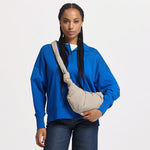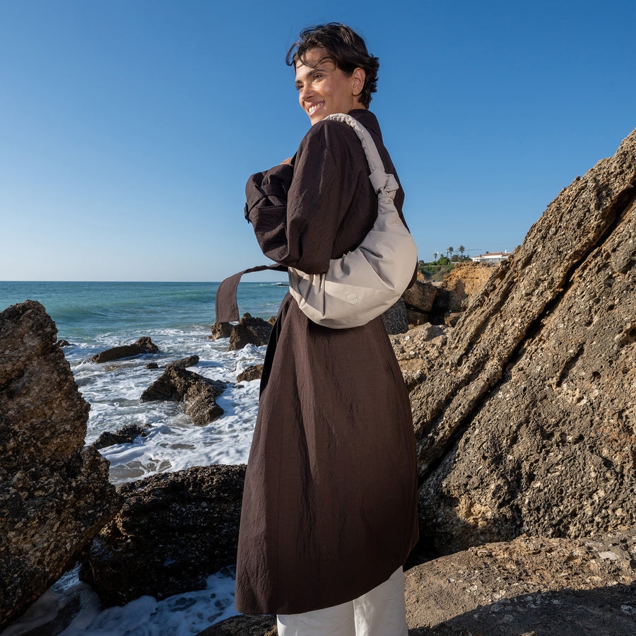 Štýlová a praktická kabelka pre každý deň. Vďaka mäkkému, jemne nariasenému materiálu a ikonickému „moon“ tvaru pôsobí moderne a uvoľnene. Aj pri kompaktnej veľkosti ponúka dostatok priestoru na všetky nevyhnutnosti. Vďaka šikovnému systému skrytého nastavenia popruhu ju môžete nosiť aj ako crossbody ľadvinku a ľahko tak meniť styling podľa nálady aj outfitu. Ľahká konštrukcia a vodoodpudivý materiál z nej robia ideálny doplnok do mesta, na cestovanie aj voľný čas.