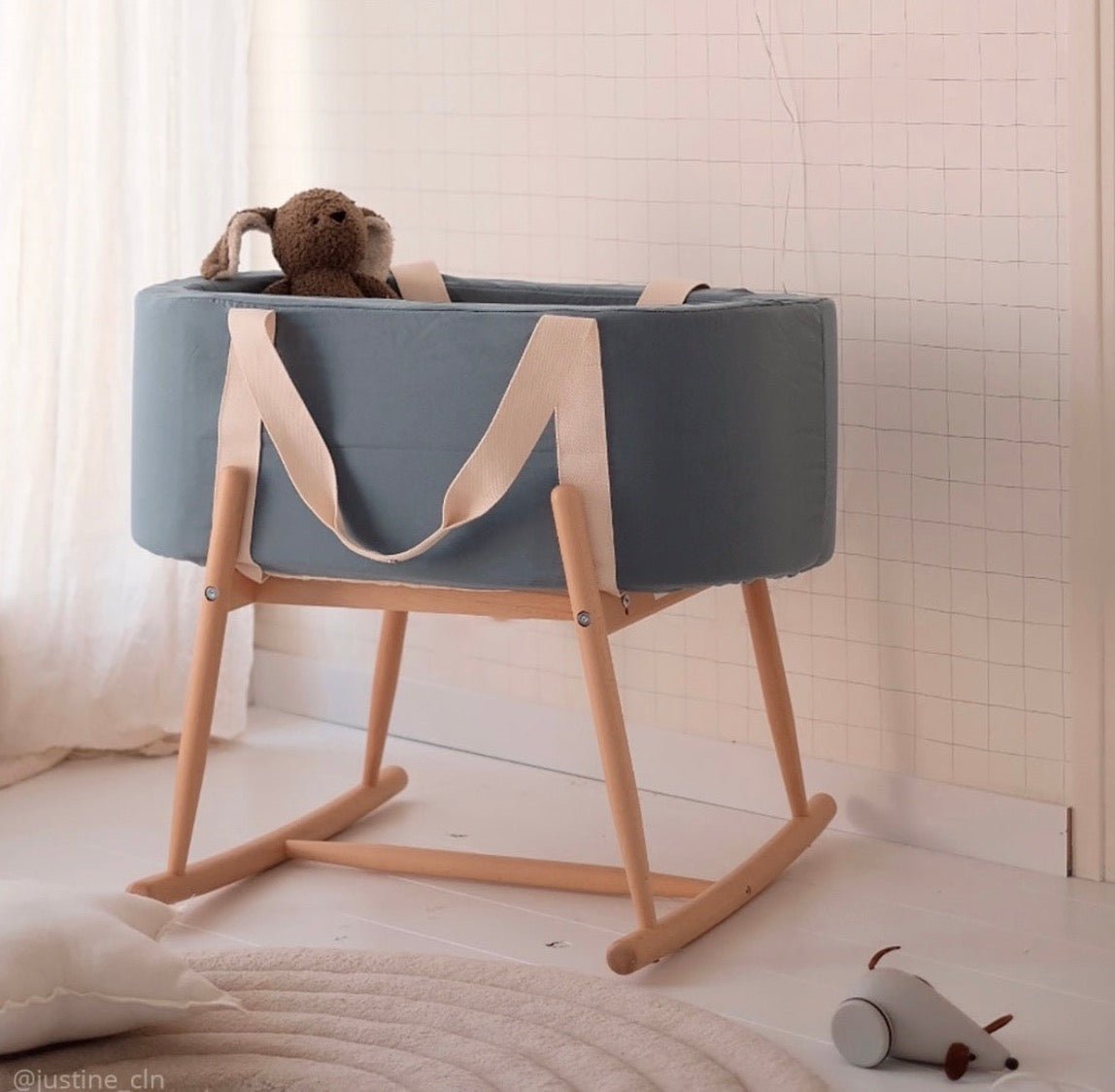 Ponúkame aj variant s dreveným hojdacím stojanom, vďaka ktorému môžete kôš jednoducho pretvoriť v kolísku.