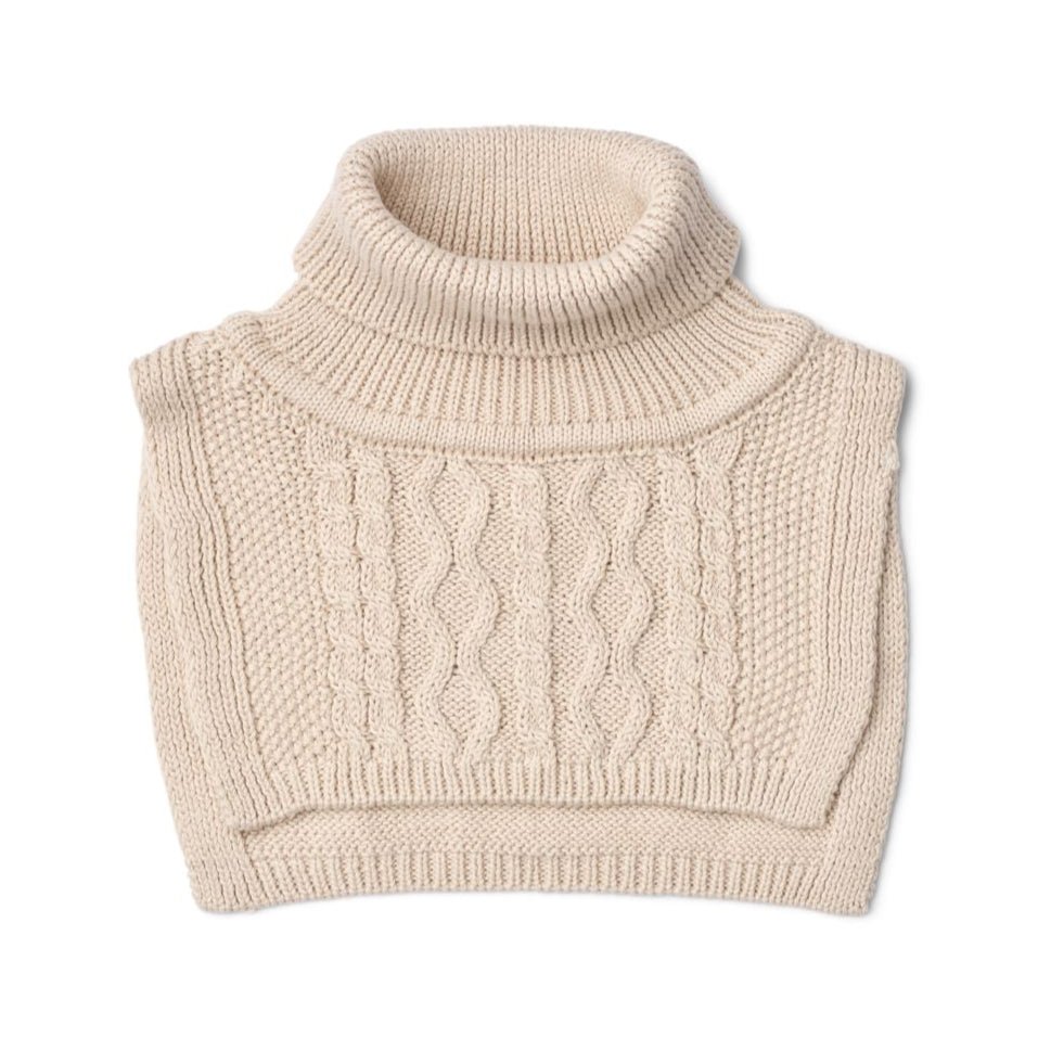 Nákrčník zo 100% organickej bavlny s certifikáciou GOTS. S vrkôčikovým vzorom, s rolákom. Krk aj hrudník dieťaťa sú v teple a v pohybe neprekážajú konce dlhého šálu. Ľahko sa oblieka a vyzlieka. Pre deti vo veku 1 – 5 rokov.