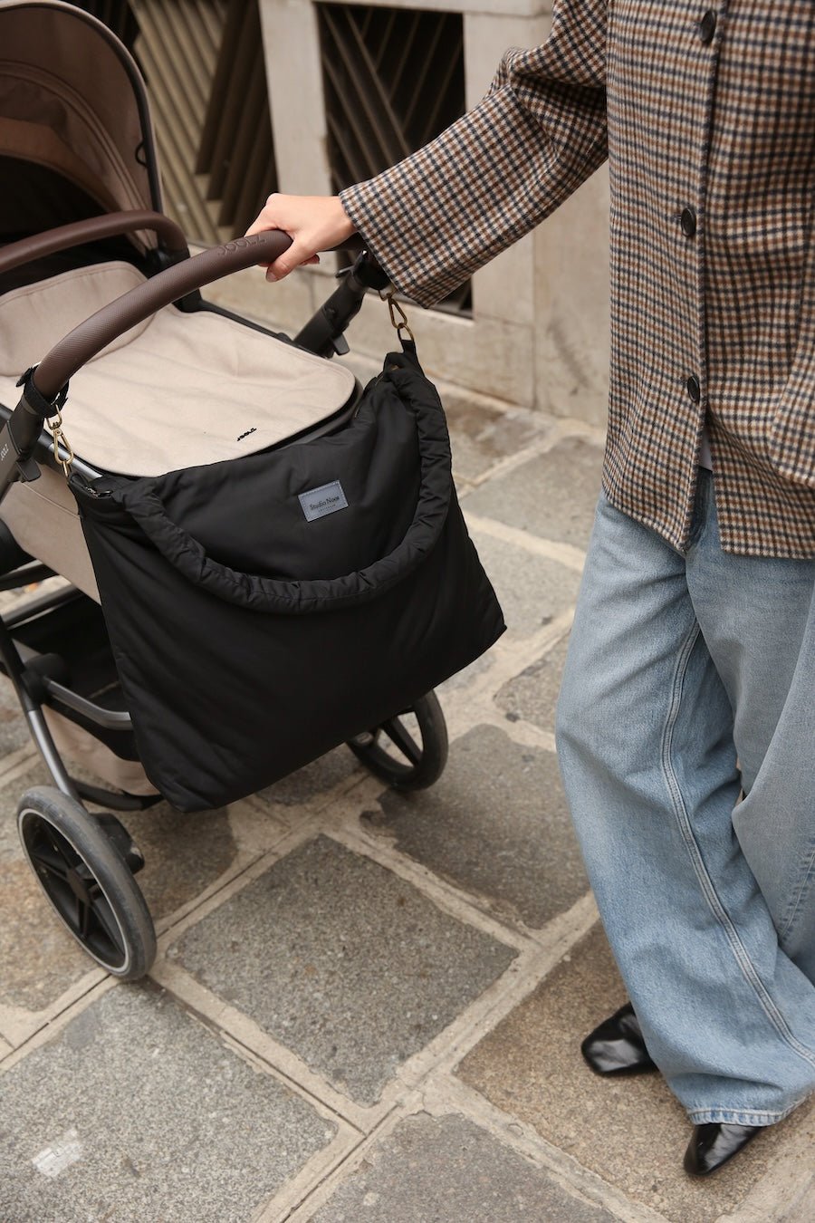 Prebaľovacia taška pre štýlových a zároveň praktických rodičov. Priestranná, vo vnútri členená, aby všetko malo svoje miesto, so zapínaním na zips a nepremokavou podšívkou. Tašku buď môžete prehodiť cez madlo kočíka vďaka dlhým uchom, alebo sú po strane úchyty na pripevnenie tašky na kočík pomocou popruhov.