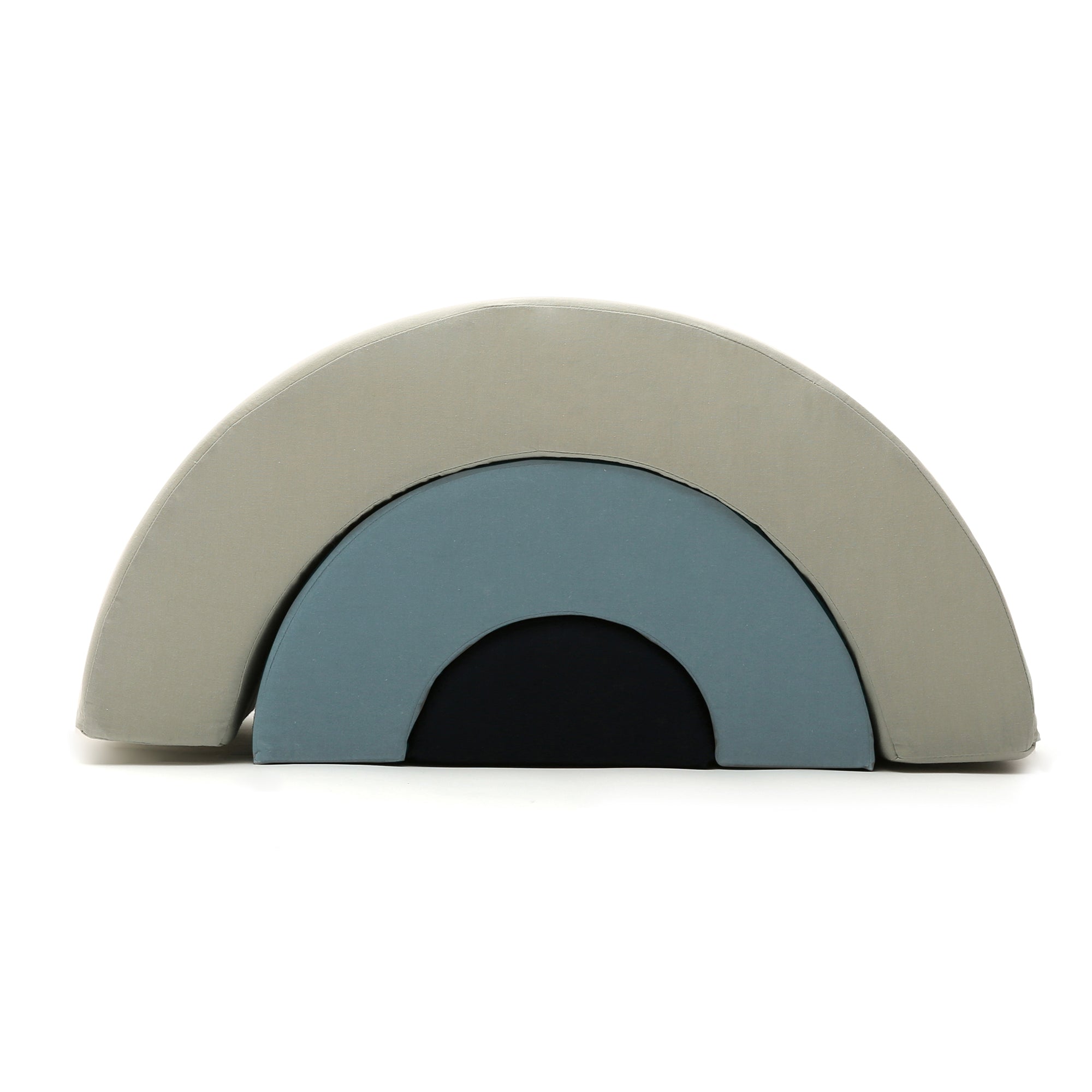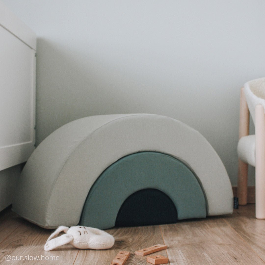 Puf, hračka, tunel, stavebnica, dekoratívny objekt. Dúha Milo od francúzskej značky Charlie Crane Paris sa stane neodmysliteľnou súčasťou detských hier a izbičky. Milo sa skladá z troch častí v tvare polmesiacov, ktoré do seba zapadajú a spoločne vytvárajú poetickú dúhu. Vhodné pre deti od cca 9 mesiacov.