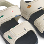 Pohodlné, ľahké sandále na suchý zips. Sandále sú ľahko umývateľné a rýchloschnúce. Hodí sa k vode aj na bežné nosenie. Ľahko sa obúvajú a vyzúvajú. Na podrážke pod pätou je roztomilý detail – obrázok pandy, ktorá bude pri chôdzi zostávať vytlačená v piesku – drobnosť, ktorú vaše deti ocenia.