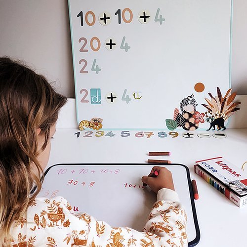 Učte deti počítať zábavne! Pri návrhu týchto magnetických číslic a znamienok sa grafické štúdio riadilo odporučením učiteľov a tak každé číslo má svoju farbu, ktorá deťom pomáha číslo ľahšie identifikovať. Set obsahuje taktiež všetky matematické znamienka vrátane "krát" a "delené" - aj keď deti spočiatku tieto znamienka nebudú používať, zoznámia sa s nimi.