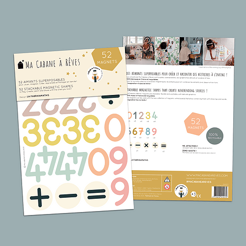 Hrajte si, tvorte, dekorujte! Magnetické tabuľky a magnetky Ma Cabane à Rêves sú tu pre deti, aby si hrali, popustili uzdu fantázií a vytvárali svoje vlastné príbehy a obrazy. Hra s magnetickými tabuľkami a magnetkami bude určite baviť aj rodičov a prarodičov, ktorí s deťmi strávia chvíle plné spoločného tvorenia- a o to tu predsa ide :-)! Hotové magnetické obrazy sa stávajú krásnou dekoráciou detskej izby alebo bytu. Magnetické tabuľky a magnetky Ma Cabane à Rêves sú navrhnuté aj vyrobené vo Francúzsku.