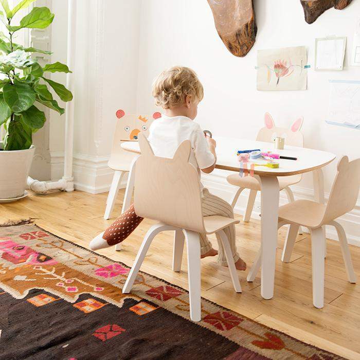 Umelecké projekty a veľa čajových večierkov - to všetko sa uskutoční na stolíku pre malé deti od cca dvoch do šiestich rokov, ku ktorému sa perfektne hodí set stoličiek Oeuf NYC Zajko, alebo Medveď. Stolík do detských izbičiek Oeuf NYC je vyrobený z odolných a zároveň eco-friendly materiálov s doskou z ľahko udržiavateľného laminátu.