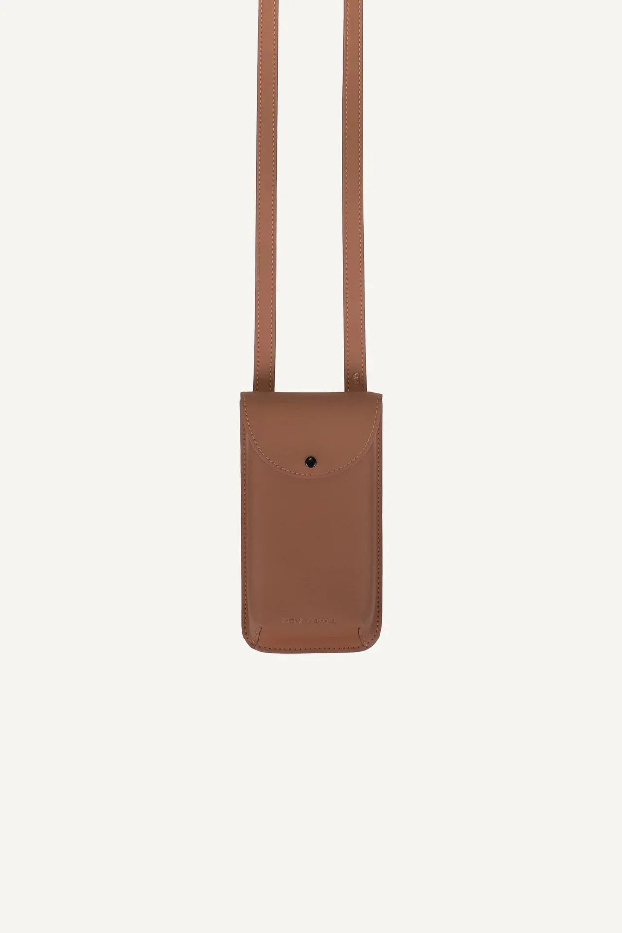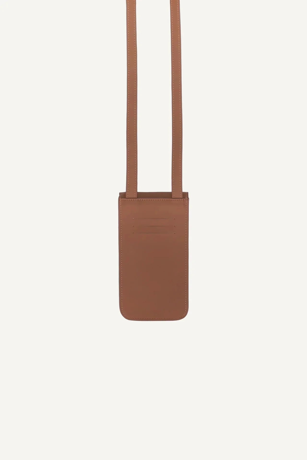 Štýlová a praktická taštička na mobil s popruhom od značky Monk & Anna. Zo zadnej strany kapsičky na karty.